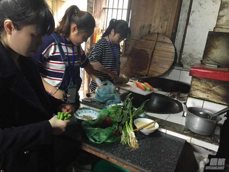 在禮堂里,30多位員工進行了簡單的活動啟動儀式,然后分成5個小組徒步到農戶家中去。一路上,員工扛著大米,拎著食材、物資,絲毫不覺著累。來到農戶家中,各個小組就開始忙碌起來,送上慰問、水果、大米、食用油等,為家中的孩子準備了小書包和零食,給農戶打掃衛生,為農戶燒一桌菜,廚房里熱火朝天,忙的不亦樂乎。