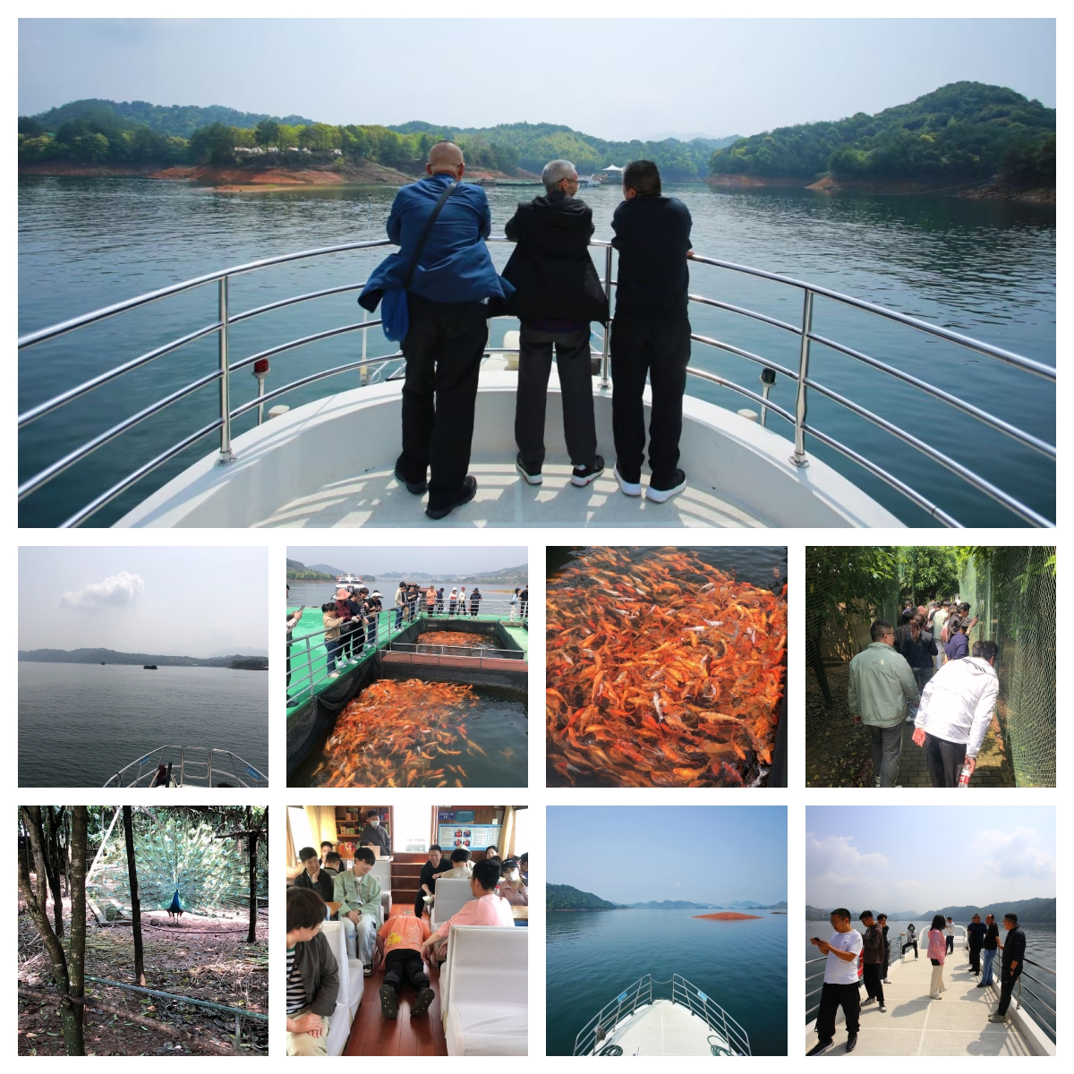 四月十五日上午,大家乘船游湖,領(lǐng)略祖國的大好河山。千島湖是我國最大的人工湖。湖中有大大小小的島嶼共計(jì)一千零七十八個(gè),因此稱作千島湖。身處游船放眼望去近處,一座座綠島僅被一水相連,水綠得比翡翠還要耀眼奪目,島上得樹木也為小島披上了一層外衣,島與水融合在一起,令人營心悅目。遠(yuǎn)處,藍(lán)天與綠水只覺得水天一色,分不清到底哪處是天,哪處是水。在此觀望的大家無不感嘆不已,不虛此行,流連忘返。"舟行碧波上,人在畫中游”,大概是所有游歷過千島湖人的感受的最好詮釋。欣賞如此景色所有人都不禁感嘆要為了維護(hù)與建設(shè)祖國大好河山更加努力的獻(xiàn)出一份力。